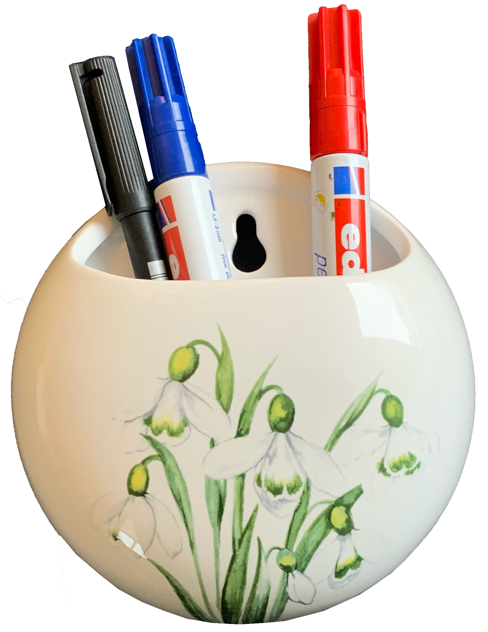 Opruimbakje met sneeuwklokjes (om op te hangen) Dol op sneeuwklokjes? En zin om op te ruimen? In dit bakje past van alles, denk aan losse elastiekjes, een rolletje bindtouw, pennen, stiften etc. Prijs: 15.- incl BTW